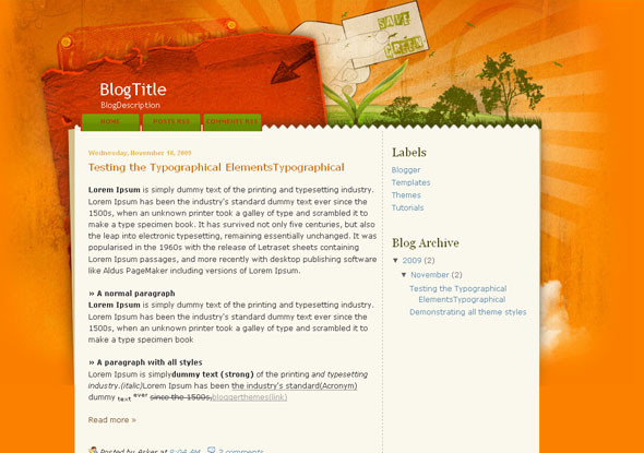 GREENARY AND ANIMATED BLOGGER TEMPLATES